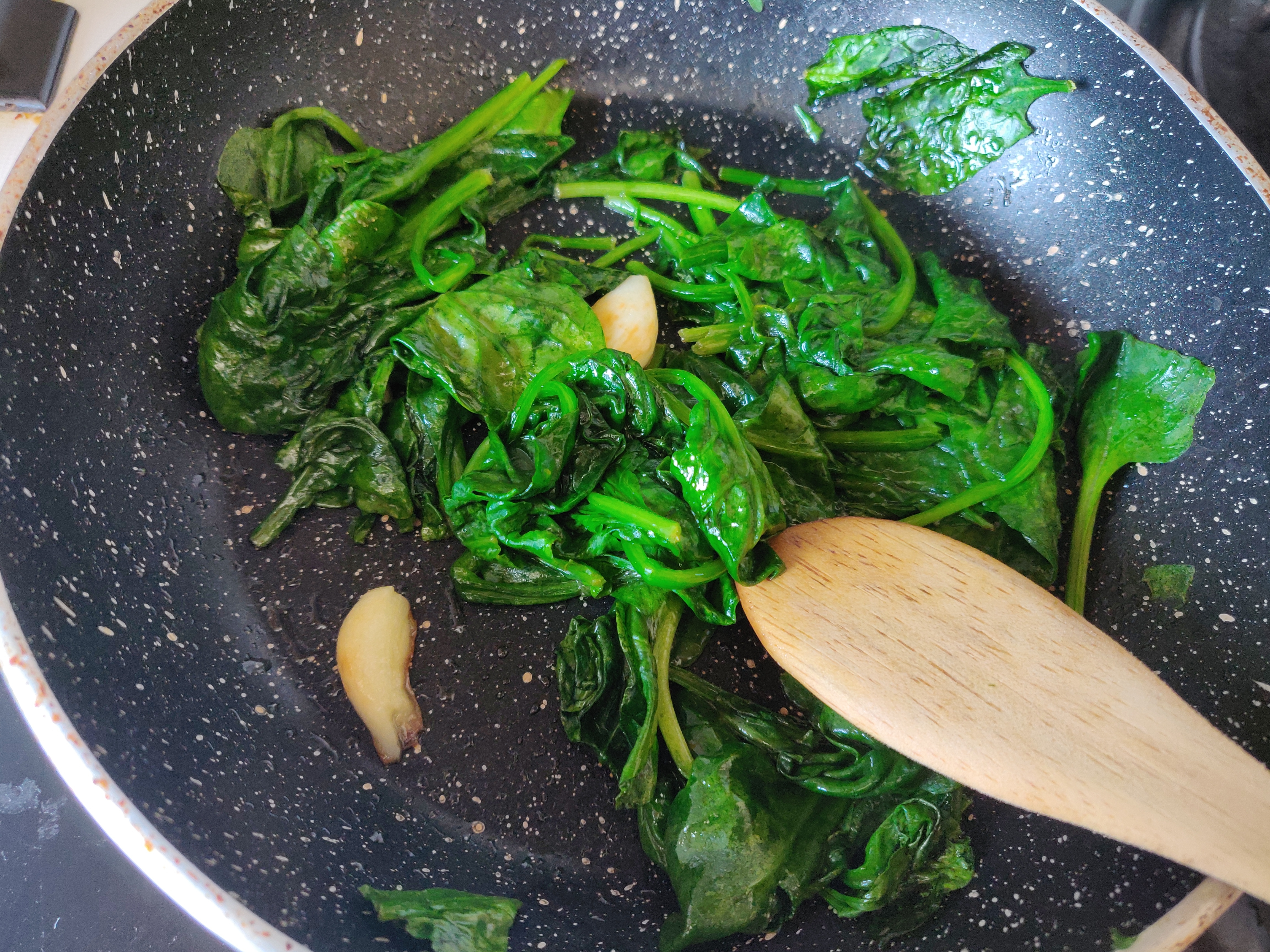 Cuando las espinacas estén listas retiramos los ajos y dejamos atemperar.